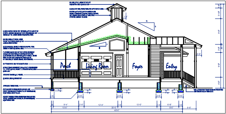 Front elevation with design details dwg files