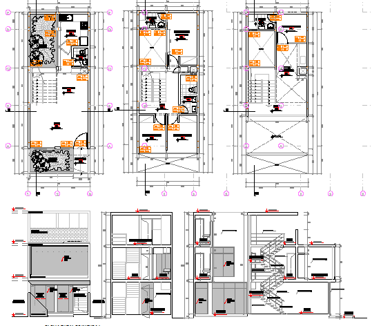 Multi-flooring modern bungalow architecture project dwg file.