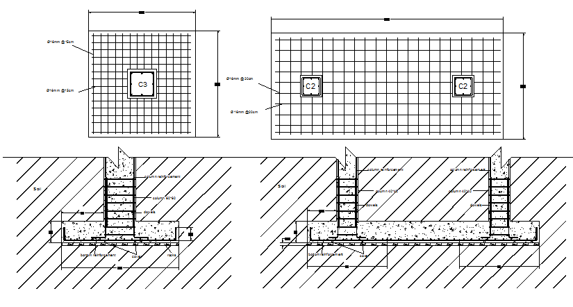 Foundation plan details of building that includes footings construction details, raw material used details, base concrete plan, wall design and details and much more of foundation plan details.