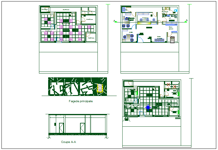 Office building floor plan detail view dwg file, Office building floor plan detail view and design plan layout view, exterior wall elevation view