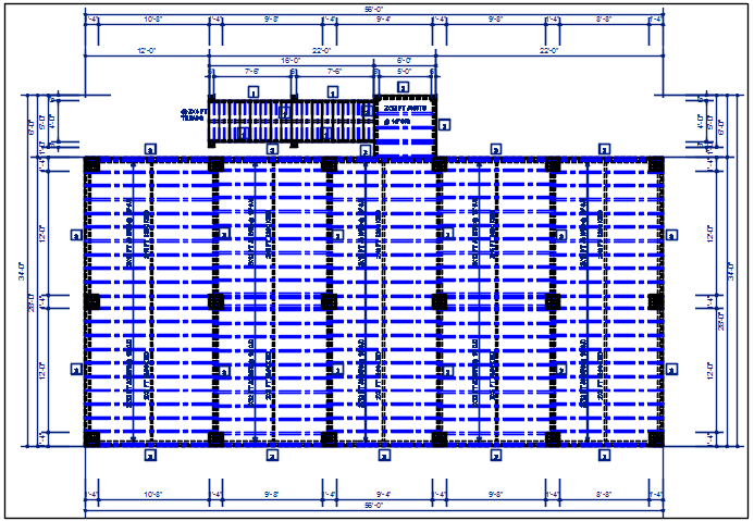 Existing flat roof plan view with foundations of column plan layout detail dwg file