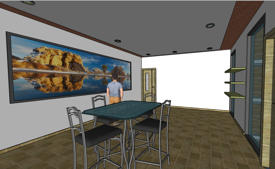 3d design of dining room of house that includes a detailed view of dining room, painting, door view, indoor interior view and much more of dining room design.
