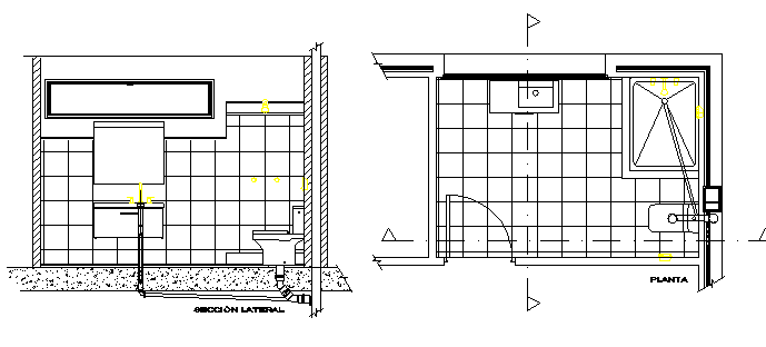Sanitary installation details of house project that includes a detailed view of door and ventilation, toilet sheet installation, wall design, sink installation, flush tank details, floor design and much more of sanitary installation details.