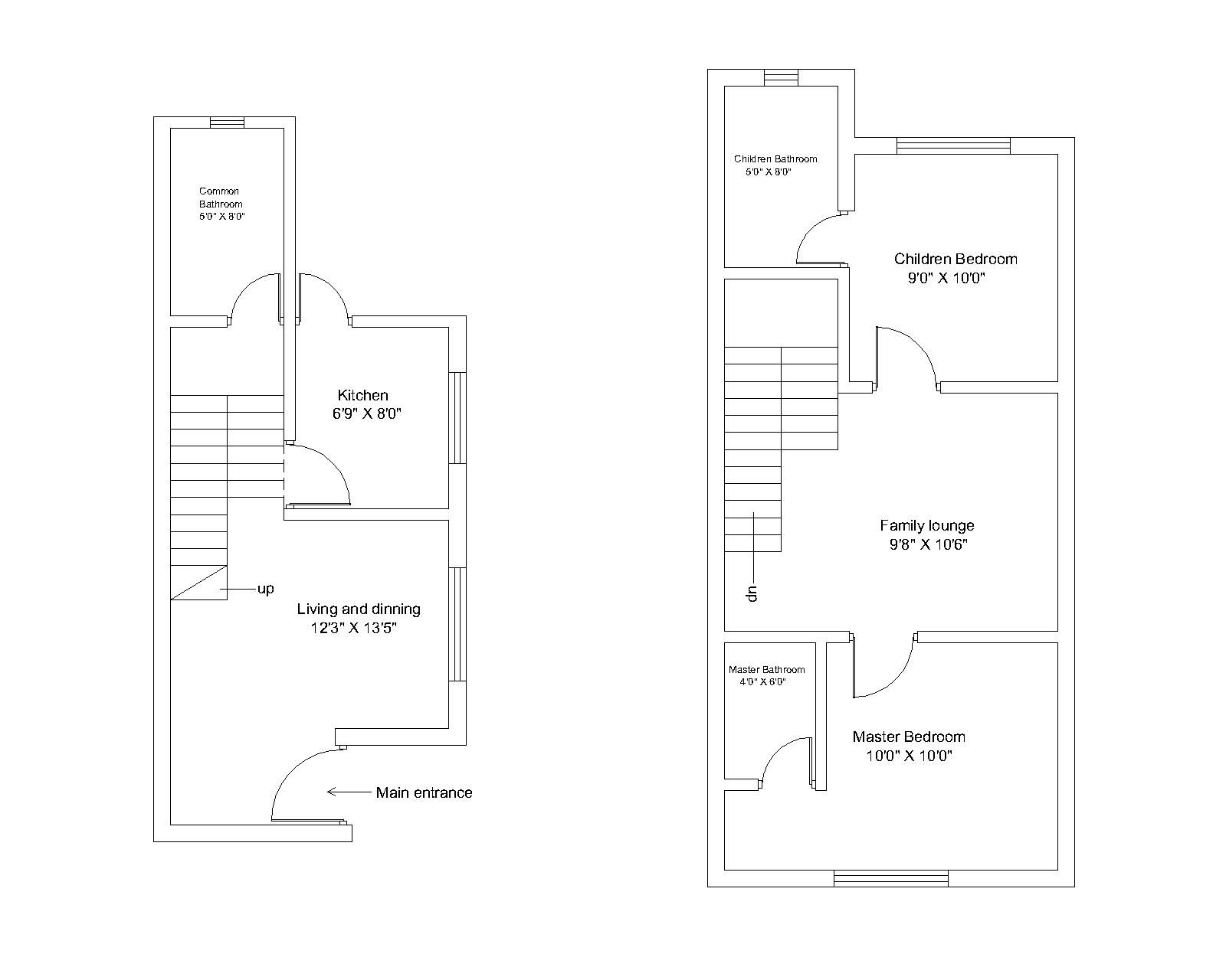 duplex house plan for 15'x 40' plot area, total plot area 600 sft, builtup area at ground floor is 350 sft and at frist floor 550 sft