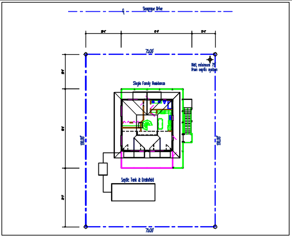Residence plan view details dwg file, Residence plan view details with plot details of the dimension details, naming is the septic tank in details