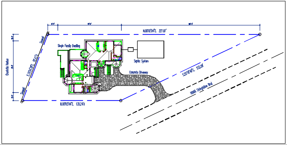 Bungalow plan view details dwg file, Bungalow plan view details with dimension details, beam details in the bungalow, hidden line plumbing line in bungalow