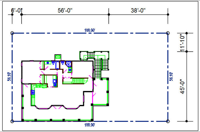 Bungalow plan view details dwg file