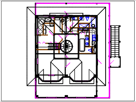 Bungalow plan view details dwg file, Bungalow plan view details with dimension details, beam details in the bungalow, hidden line plumbing line in bungalow
