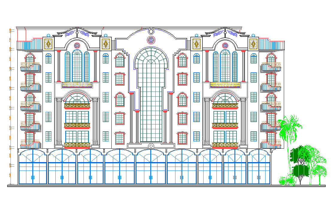 Villa elevation view dwg file