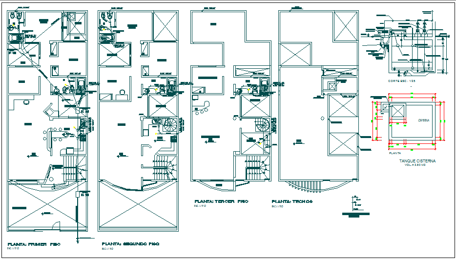Residential Building plan view detail dwg file