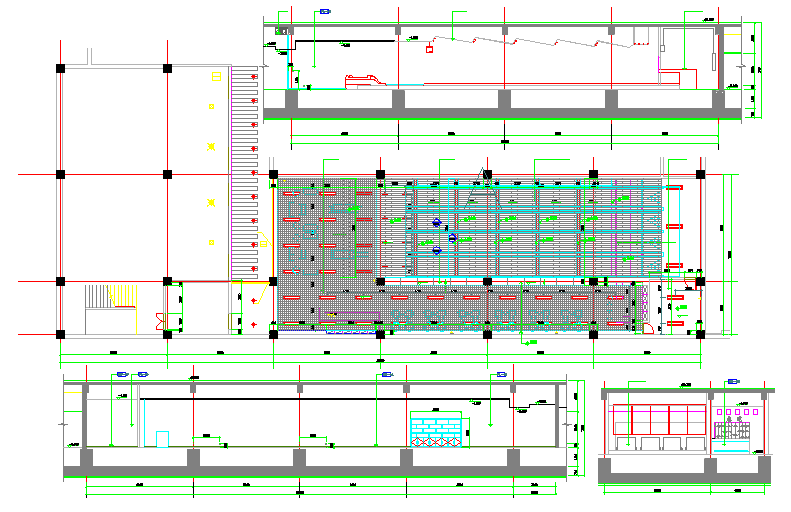 Bowling plane & elevation Design in cad file, & All dimension include & Elevation detail, & Furniture Detail, & elevation in all floor level dimension.