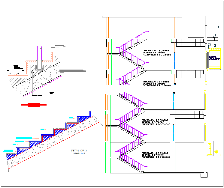Staircase section plan detail view dwg file, Staircase section plan detail view with specification detail, dimensions detail
