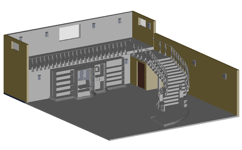 Library 3d view dwg file in 3d view of library with wall and floor view,designer stair view,book cup board view,lamp view with air vent view,room view of library and view