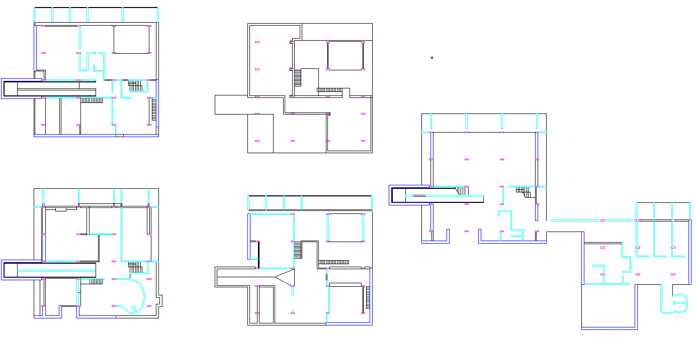 Additionally, the drawing reflects Jeanneret’s architectural approach through clean geometry, interconnected internal pathways, and clear zoning for service and living spaces. The DWG captures the shifting volumes across the different floors, showing how the residence transitions horizontally and vertically. Elements such as stairwell positions, cantilever-like projections, and distinct room separations are accurately outlined. This file is ideal for architects, civil engineers, and students studying modernist Indian architecture and structural planning. With precise digital drafting and complete multi-plan documentation, the Villa Shodhan DWG offers valuable reference for design studies, technical analysis, and professional architectural modelling.
