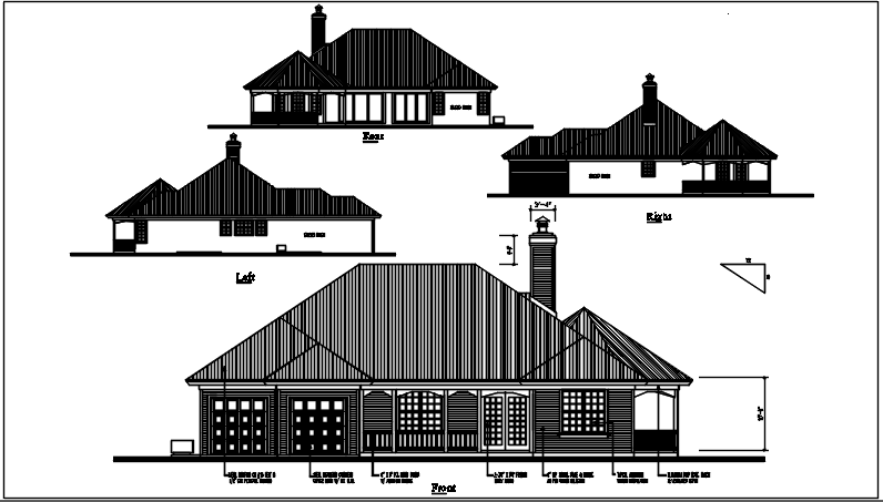 Structure elevation file Left & right elevation,front & rear elavation details with dimension details dwg files