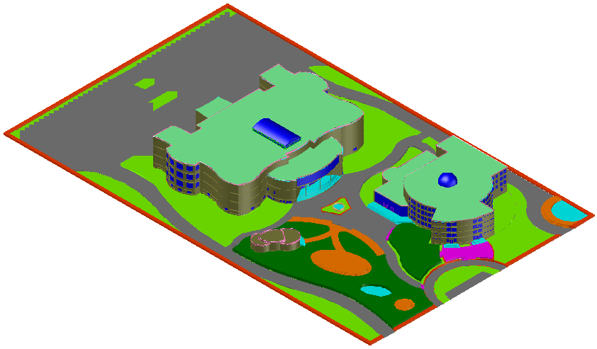 3D view of museum design dwg file in 3d view of museum with tree view and road view and designer building view of museum and wall ,designer column,step view in main entrance,fountain and walking way view.