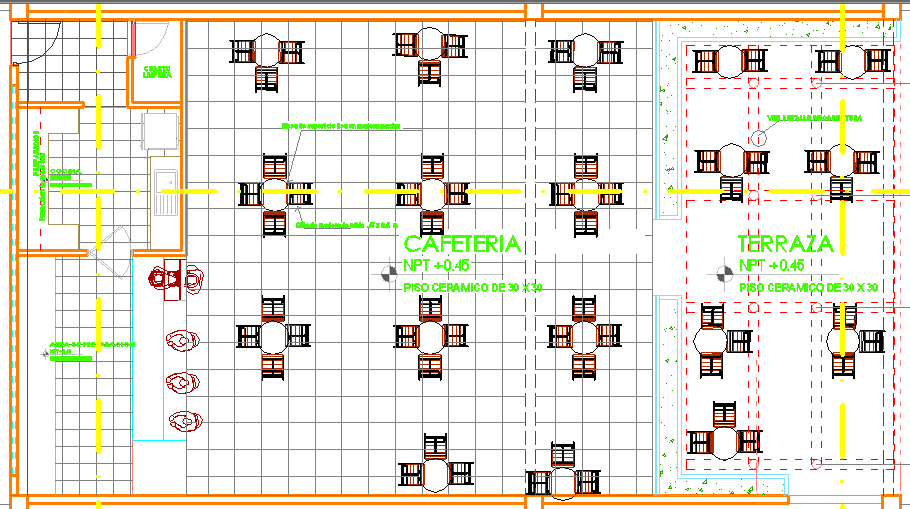2D layout plan of a cafeteria dwg file