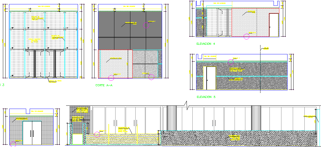 Elevation of a lobby office dwg file, this file shows elevation design of a office, it shows the concrete detailing design, material used is concrete