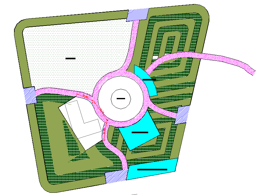 Landscape layout plan of federal government dwg file, here there is a top view layout plan of a building, landscape designing, greenery etc