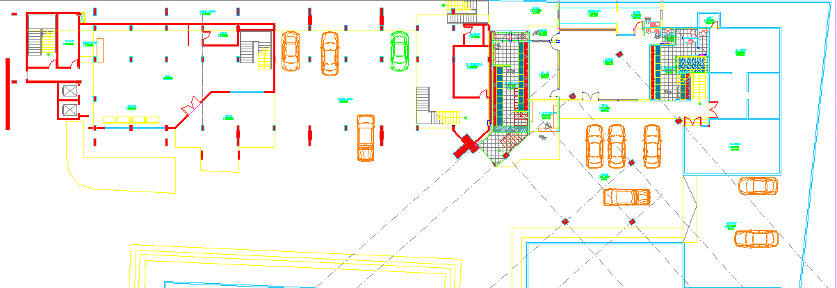 layout plan of a office or building, here there is top view layout plan of parking details, spacious parking detailing