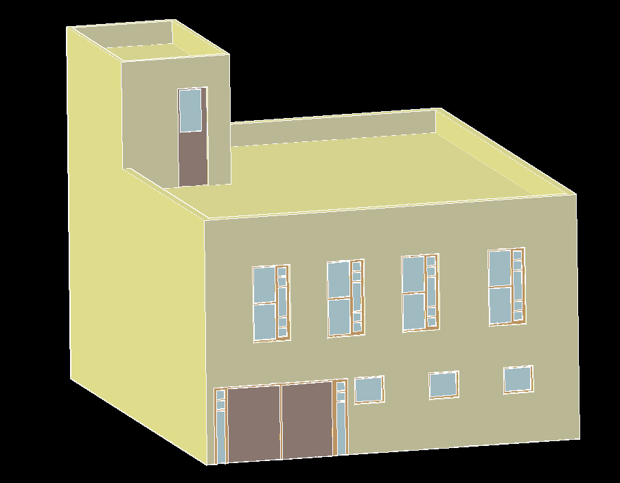 This 3D Residential House Model DWG presents a clean and realistic architectural visualization of a modern two-storey home, accurately representing external volumes, window placements, and façade proportions. The model showcases a rectangular massing with a flat roof system, a front elevation designed with vertically aligned windows, and a central main entrance that defines the visual symmetry of the structure. The attached vertical tower block, which includes an upper-level door and parapet, adds functional height variation suitable for staircase enclosures, service space, or rooftop access. All elements are drafted with precise geometry to support architectural planning, presentation, and design refinement.