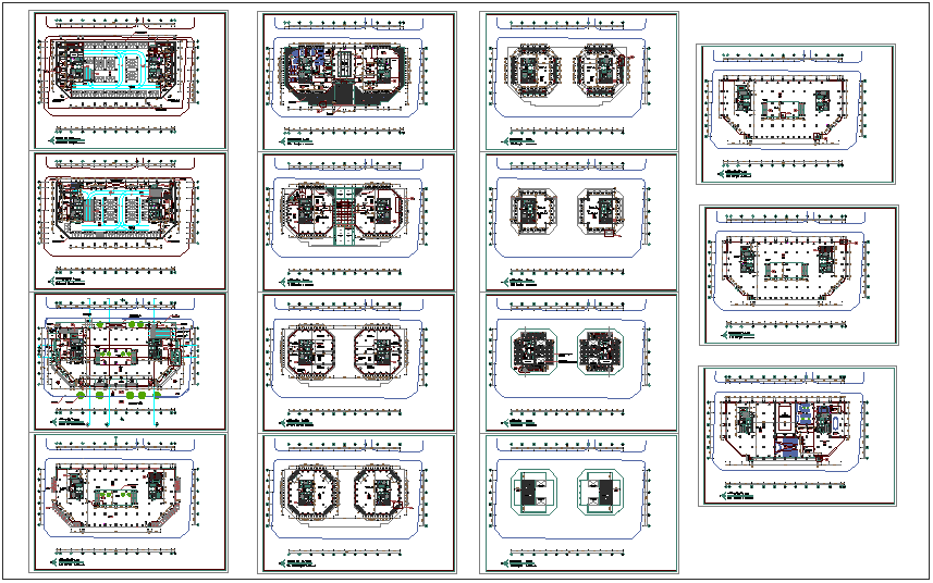 Construction view of floor plan for building dwg file in floor plan view with area distribution and wall view with necessary dimension.
