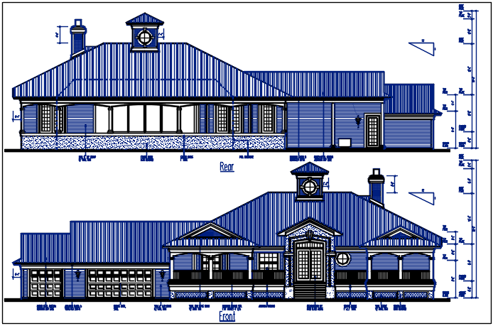 Elevation plan of details dwg files, rear Elevation and front elevatipn plan of details with dimension details, naming door, window, large door, etc.
