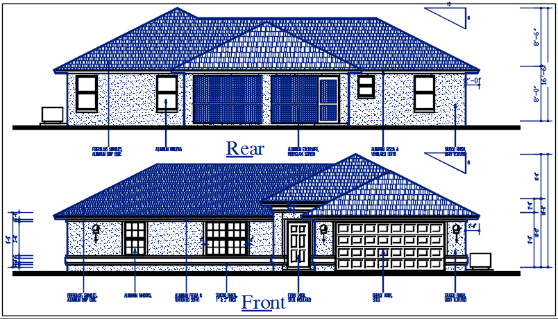 Front and rear elevation details with dimension details dwg files, Front and rear elevation details with dimension details, elevation design