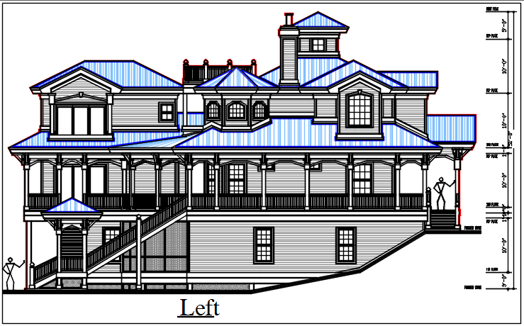 left elevation dwg file,plan shows complete left side elevation,it consist of staircase,windows section,porch areaetc.