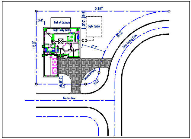 key plan dwg file,showing details of roads and seplic system,showing pool area description,plan consist of single family dredging