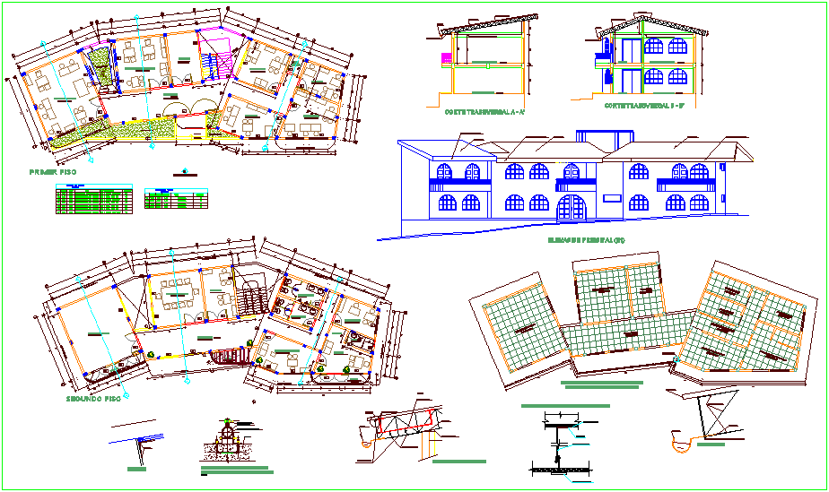Plan and elevation of municipality building dwg file