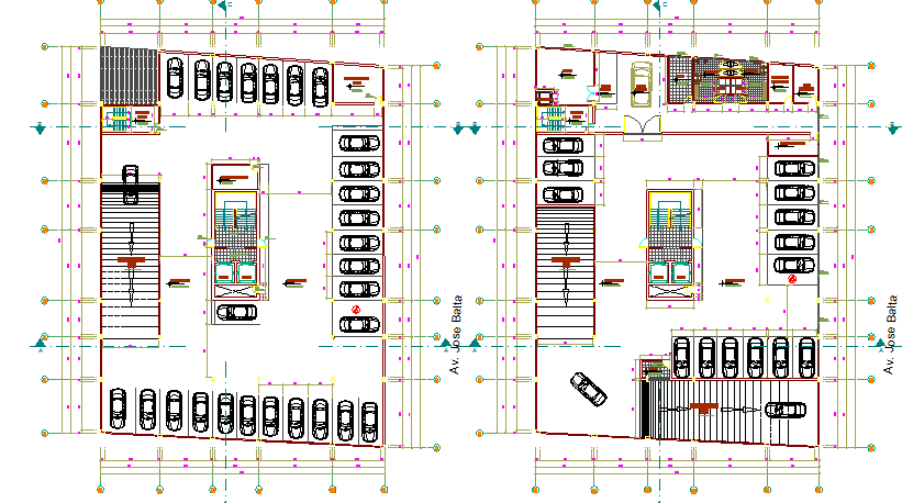 layout plan of a office or building, here there is top view layout plan of parking details, spacious parking detailing