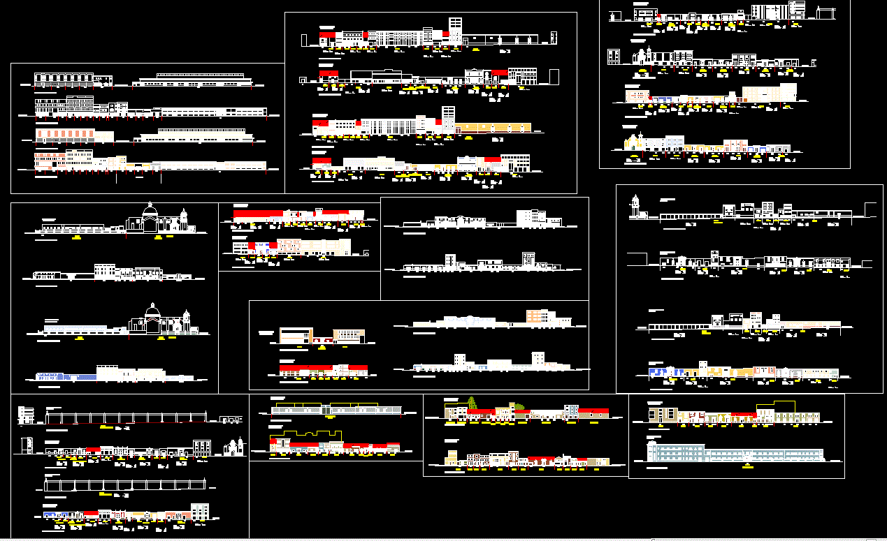 This Peruvian Heritage Design DWG drawing file presents a comprehensive architectural layout featuring historical building elevations and detailed plans. The drawing highlights diverse Peruvian architectural styles, from the grandeur of the Inca Empire to Colonial and Baroque influences. Each structure in the layout represents an important part of Peru’s architectural evolution, including classical facades, church towers, arches, and detailed masonry patterns. The DWG drawing captures proportional balance, elevation detailing, and spatial distribution across multiple heritage structures.