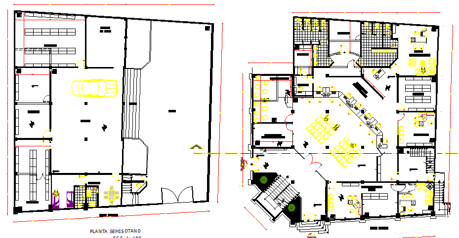 Layout plan of Building collection and control elevation dwg file, this file contains furniture detail of a building, table and chairs, terrace detailing