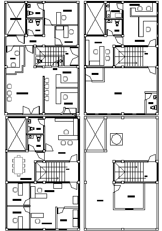 Ground, first, second & top floor plan layout of corporate office building dwg file