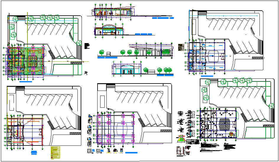 Bank project design with architectural,hydraulic and electrical plan with elevation and section view dwg file