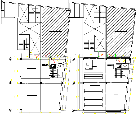 Floor plan details of corporate office building that includes a detailed view of main entry door, reception area, inquiry desk, conference room, meeting room, indoor staircase, general hall, passage, toilets and much more of corporate office building details.