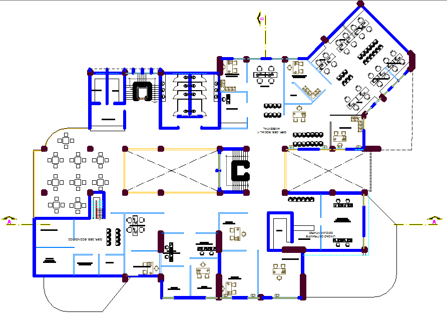 layout plan of a hotel dwg file, here there is layout plan of hotel, containing all details, furniture , landscape, space, luxurious hotel design in auto cad format