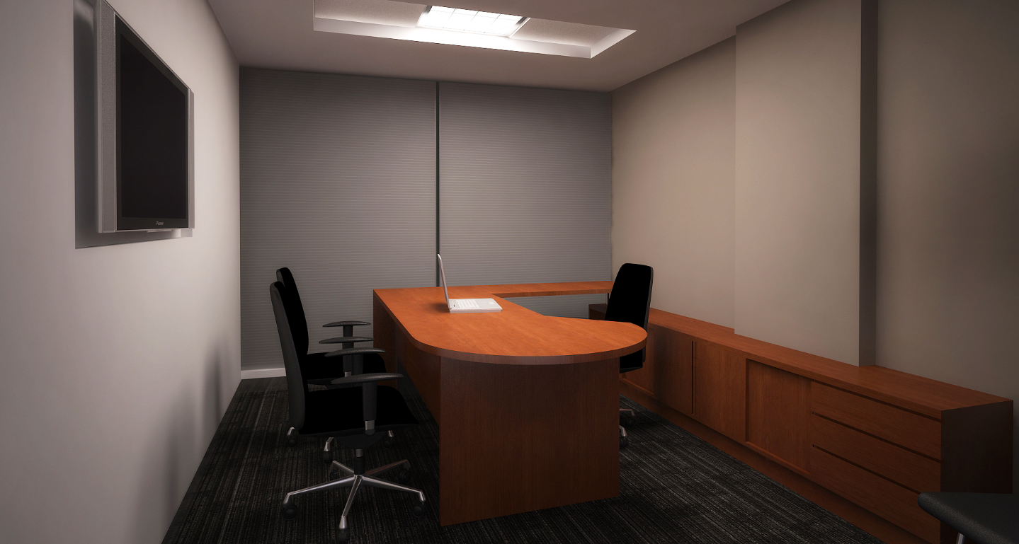 3d image view of office , here this file contains 3d view of a office cabin area design , color concept is shown etc