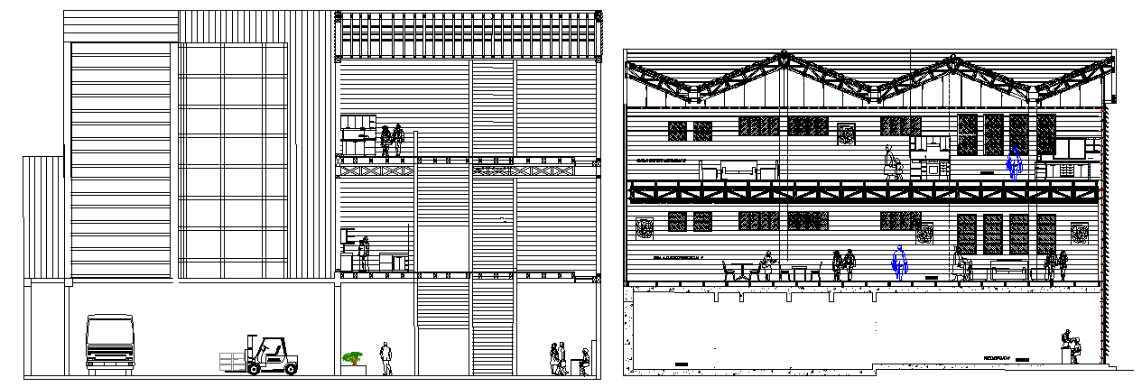 Elevation of a big showroom and complex dwg file, big shopping complex design, human figure detailing, modern design