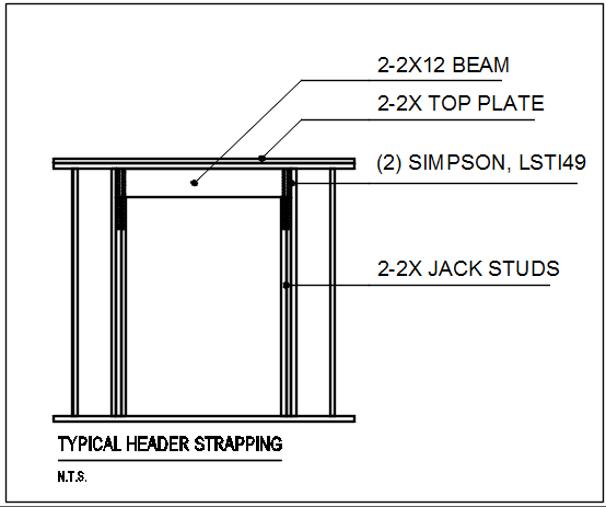 Typical header strapping plan detail dwg file, Typical header strapping plan detail with naming beam, plate, jack studs, simpson