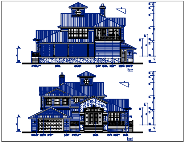 Front and rear elevation details with dimension details dwg files, Front and rear elevation details with dimension details, naming elevation door, window, light lamp, etc.