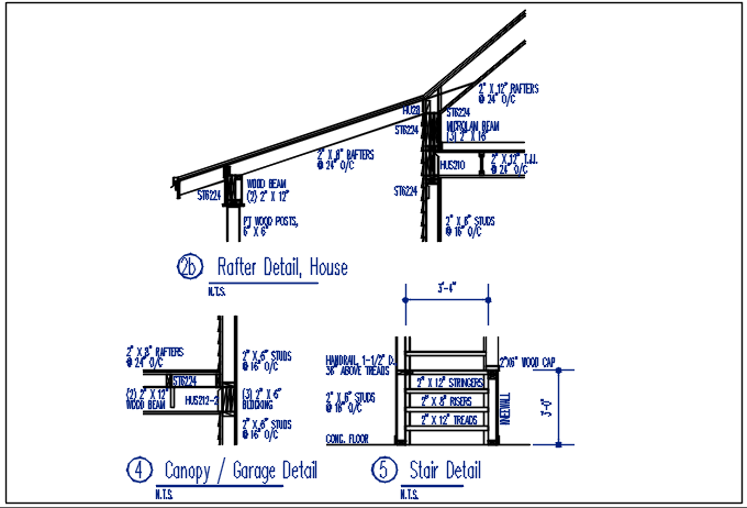 Rafter detail, house and stair detail, garage detail dwg file