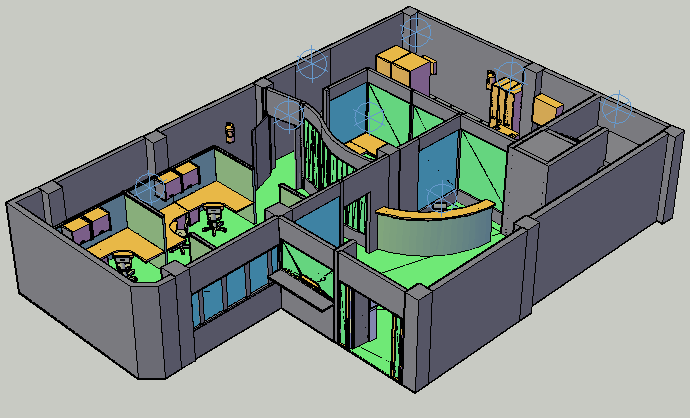 3D Office Interior Plan with Furniture Layout in DWG Drawing File