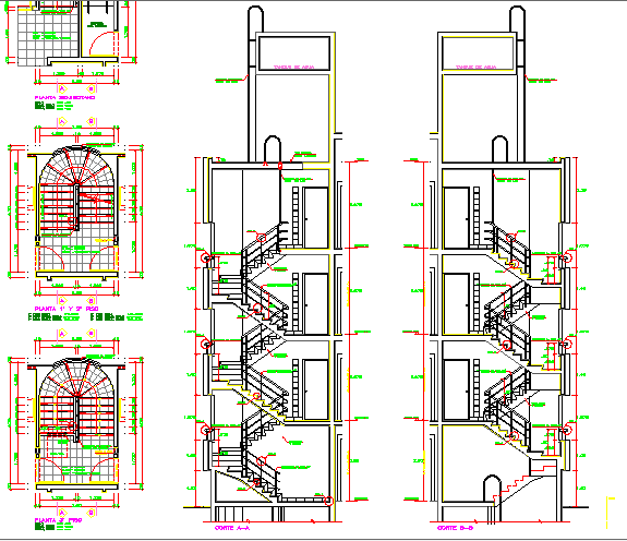 Sectional view of main & indoor staircase of residential apartment building dwg file
