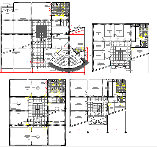 Data networking office building floor plan architecture layout details that includes a detailed view of main entry gate, indoor staircase view, reception area, waiting area, sitting area, conference room, meeting room, general hall, passage, employee offices, head offices, kitchen, dining area, toilets, indoor furniture view and much more of building floor plan details.