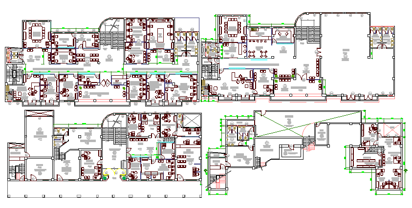 Ground, first, second and top floor layout plan of administration office dwg file.