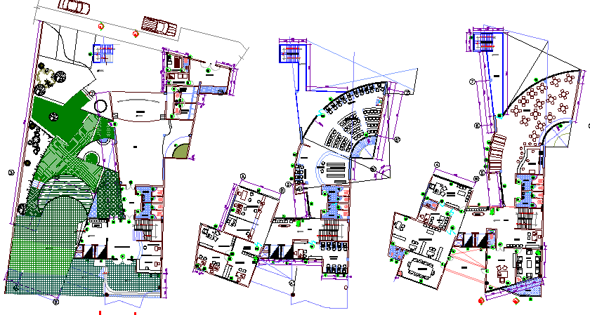 Ground, first & second floor layout plan, municipality corporation building dwg file