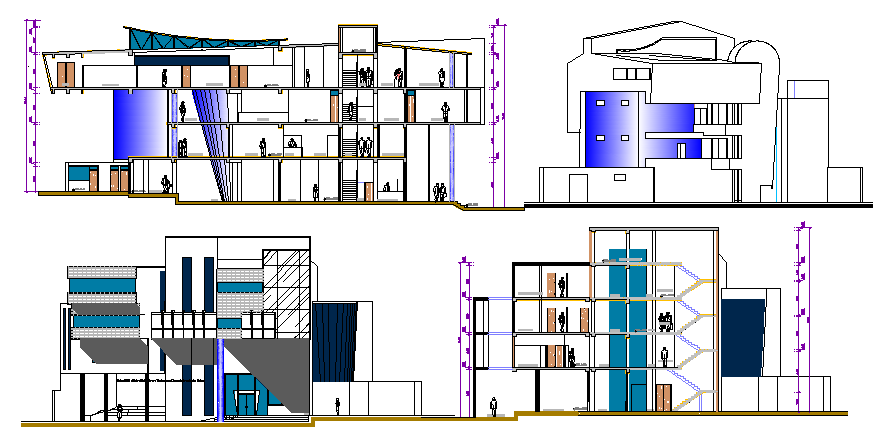 All sided elevation & sectional view, municipality corporation building dwg file