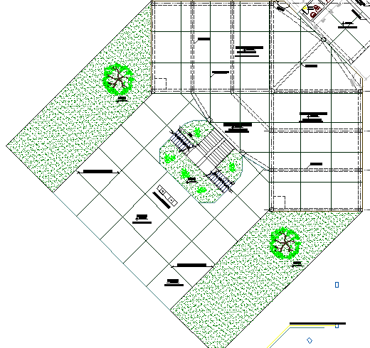 Site plan details with landscaping of city council office landscaping view, tree view, green area, car parking view, roads view, indoor roads, landmarks, measurements, road numbers, green area, staircase view, structure details and much more of office site plan details.